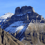 Eiffel and Temple Mountains (closeup) seen from Wenkchemna Pass, Banff National Park, October 2023.