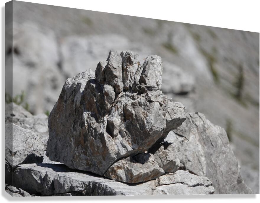A naturally sculpted rock resembling a grumpy face on the descent from Garriochmill Peak, Kananaskis, Alberta. June 2025.