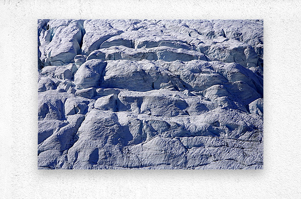 Close-up of fractured ice structures on the Athabasca Glacier, revealing intricate textures and crevasse patterns, seen from the ascent to Boundary Peak, Jasper National Park, Canadian Rockies. August 2025.
