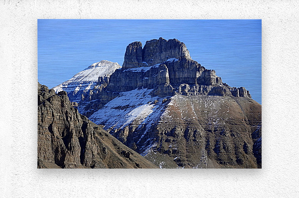 Eiffel and Temple Mountains (closeup) seen from Wenkchemna Pass, Banff National Park, October 2023.