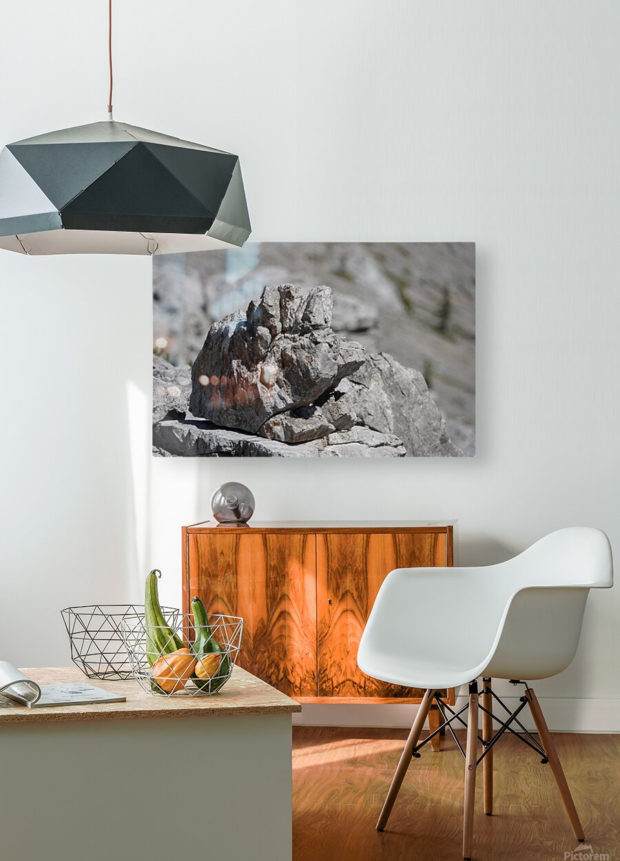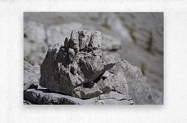 A naturally sculpted rock resembling a grumpy face on the descent from Garriochmill Peak, Kananaskis, Alberta. June 2025.
