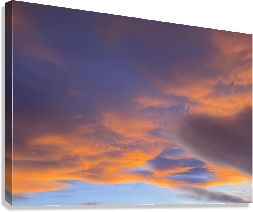 A fleeting winter afterglow ignites the sky above the Bow Valley, where soft layers of cloud catch the last light and shift from cool blues to vivid amber. Captured from northwest Calgary in February, this minimalist composition distills the quiet drama of a prairie sunset into color, texture, and atmosphere.